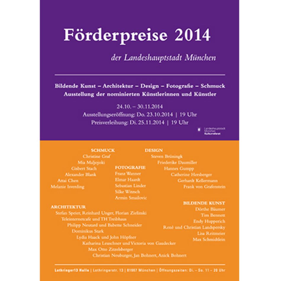 Unter den Nominierten, deren Arbeiten vom 24.10. - 30.11.2014 in der Lothringer13 Halle zu sehen sein werden sind im Bereich der Architektur zahlreiche TUM-Mitarbeiter und -Alumni.