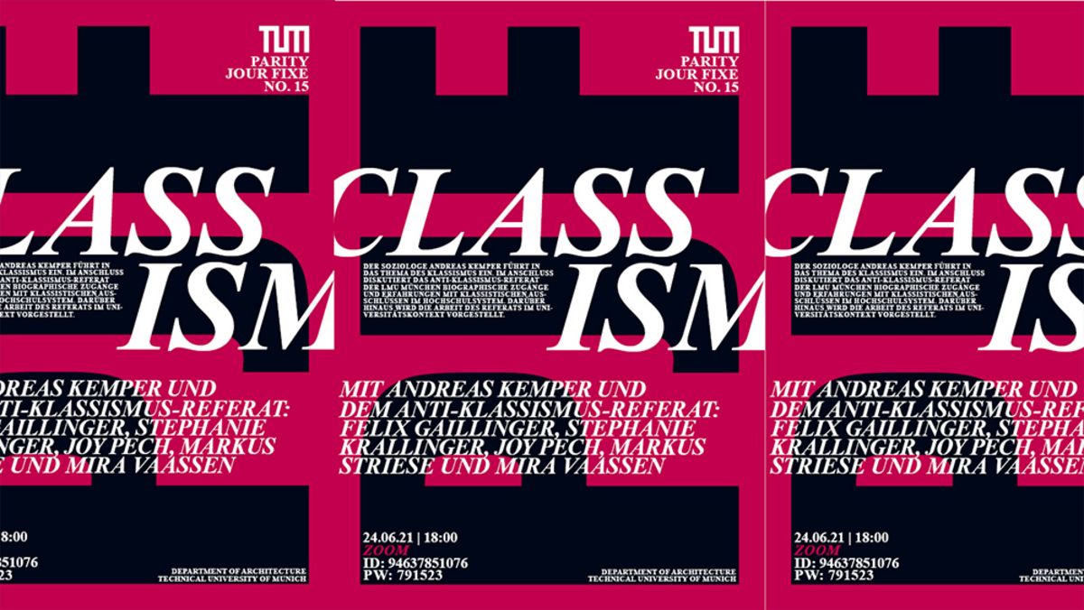 Der Soziologe Andreas Kemper führt in das Thema des Klassismus ein. Im Anschluss diskutiert das Anti-Klassismus-Referat der LMU München - vertreten durch Felix Gailinger, Stephanie Krallinger, Joy Pech, Markus Striese und Mira Vaassen - biographische Zugänge und Erfahrungen mit klassistischen Ausschlüssen im Hochschulsystem. Darüber hinaus wird die Arbeit des Referats im Universitätskontext vorgestellt.