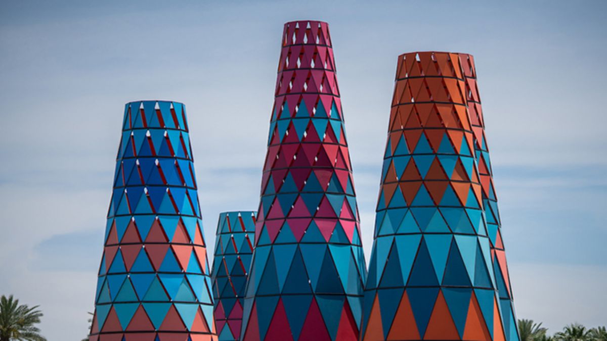 His sculptures that were on display throughout the 2019 "Coachella" festival were not only colourful art installations. Just like the Baobab tree, his structures also provide shelter from the sun and are well ventilated due to their cone shape.