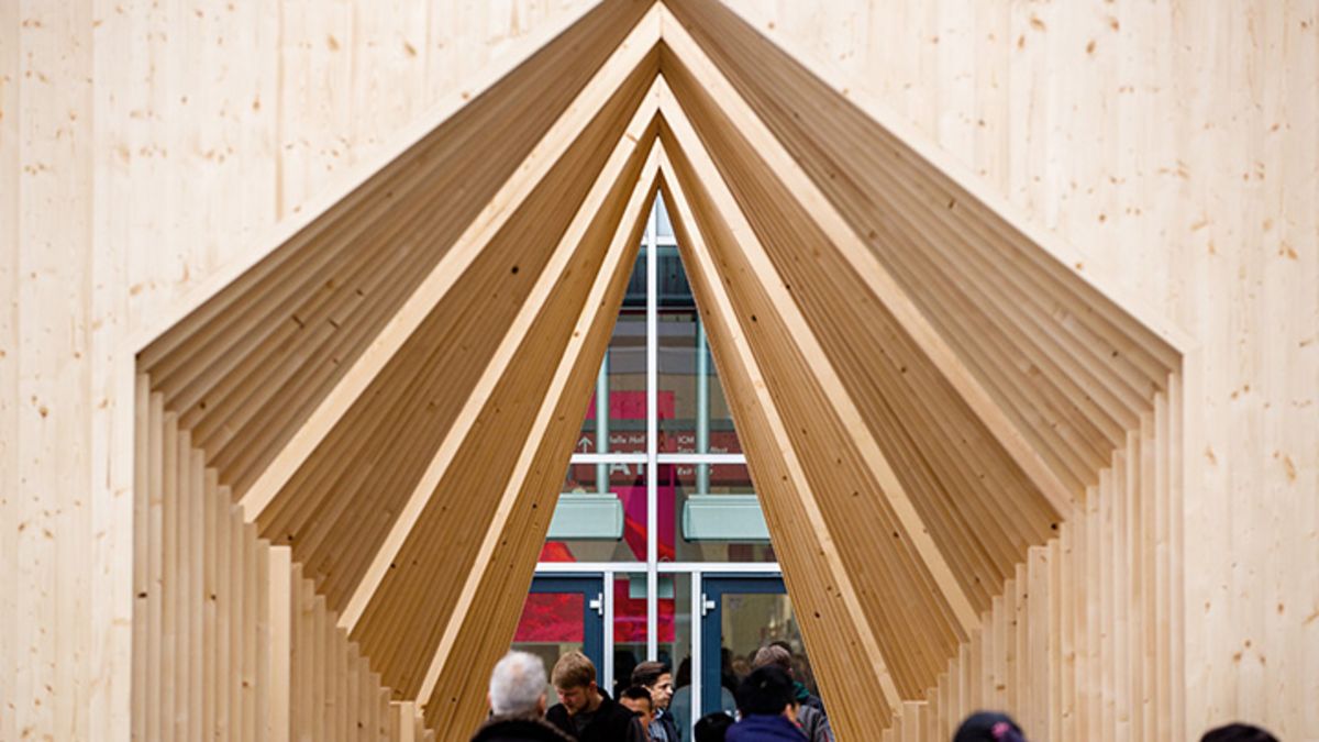 Anders als bei den Vorgängerprojekten, der schauholzbox und der woodbox, die Prof. Hermann Kaufmann und Maren Kohaus, Professur für Entwerfen und Holzbau, explizit als Ausstellungsboxen konzipiert haben, sollte bei der woodpassage der Bau an sich die Vorzüge des Bauens mit Holz darstellen und sinnlich erfahrbar machen.