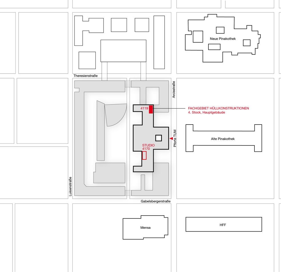 Unsere Räume befinden sich im 4. Obergeschoss direkt neben dem Nordtreppenhaus des Hauptgebäudes der TUM an der Arcisstraße 21.