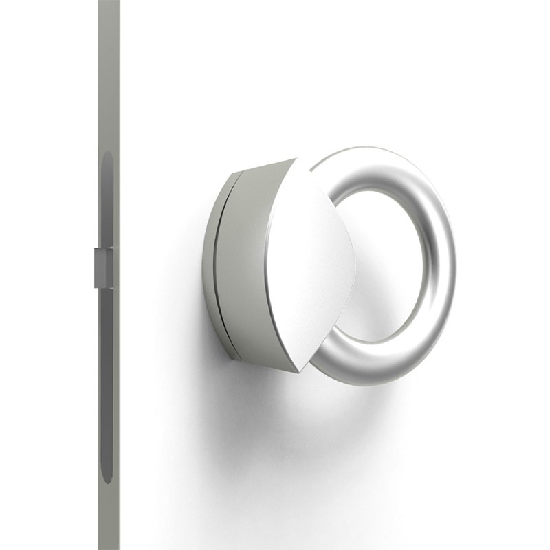 Die außergewöhnliche Form des Griffes ermöglicht eine permanente Desinfektion, sowie eine intuitive Bedienung durch Drücken und Ziehen in Öffnungsrichtung. Markierungen signalisieren die Wirksamkeit und dienen zudem als Kontrollmecha- nismus. Zusätzlich erlaubt die Formgebung auch eine freihändige Verwendung.