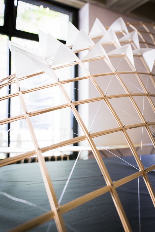 Gridshells are curved surface structures which are constructed by a network of linear elements. The continuous curvature allows for an efficient load-bearing behavior making it possible to create lightweight structures with high stiffness. During this Master programme course in the summer semester 2016 the students were asked to design a temporary gridshell for the Structural Membranes Conference which will be held at the Technische Universität München from 9th – 11th of October, 2017.