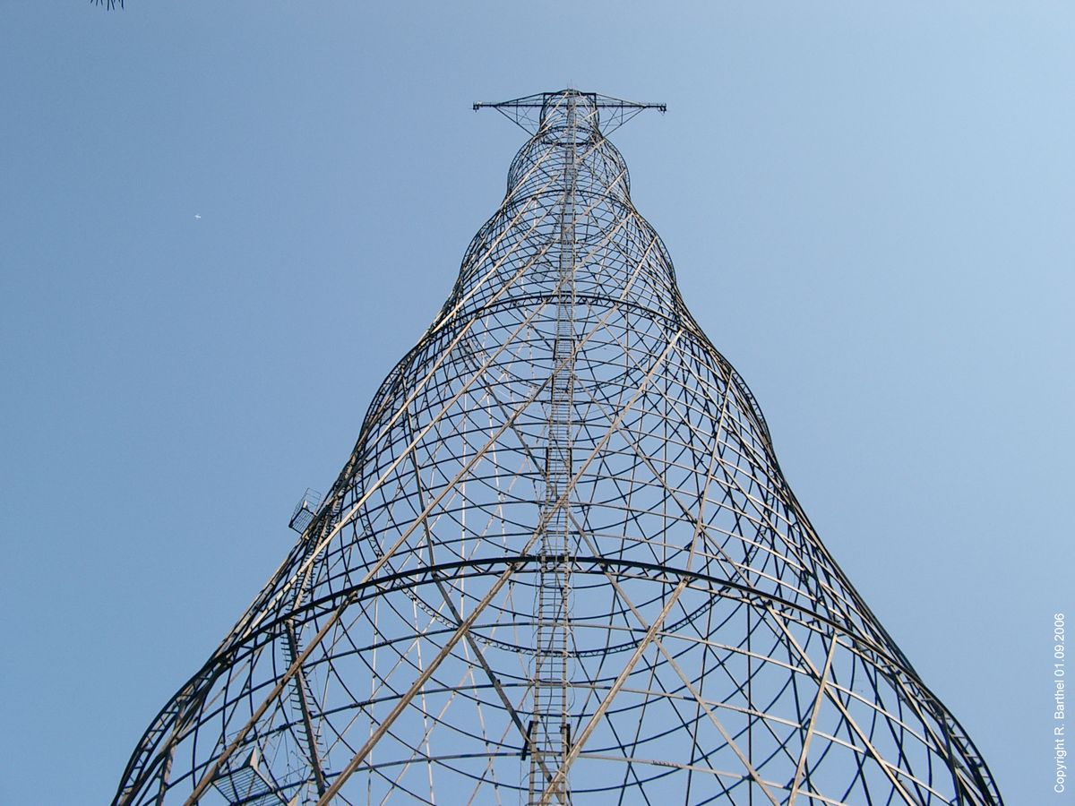 Vladimir G. Shukhov (1853 – 1939) is one of the pioneers of lightweight construction. In 1927 – 1929 he planned and built a group of 6 transmission line towers, with two of them reaching an overall height of more than 130m. One of these very tall towers still exists today. With its astounding lightness, structural clarity and simple yet elegant detailing this building is undoubtedly one of Shukhov´s most striking constructions.