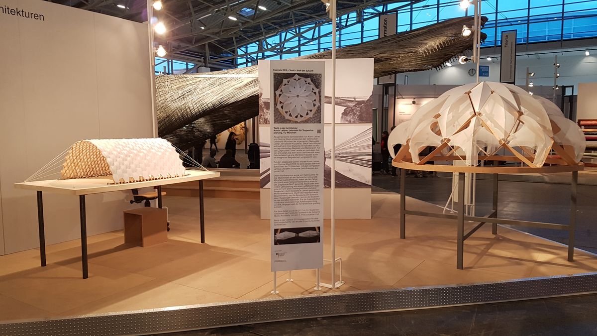 Die ehemalige TUM-Studentin Katrin Leitner hat ihre Modelle, die im Rahmen des Projektes Emperimental Structures am Lehrstuhl für Tragwerksplanung entstanden sind, auf der Internationalen Handwerksmesse München vom 11.-15.03.2019 ausgestellt. Ihr Stand war dabei Teil einer Sonderschau: EXEMPLA 2019 - "Textil - Stoff der Zukunft". Mehr...