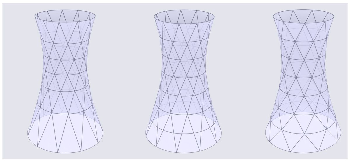 Im Teilprojekt „Entwurfsprozesse und Tragverhalten“ des D-A-CH Forschungsvorhabens „Konstruktionswissen der frühen Moderne - Šuchovs Strategien des sparsamen Eisenbaus“ werden am Lehrstuhl für Tragwerksplanung Form und Tragverhalten hyperbolischer Stabwerke eingehend untersucht. Dieser Tragwerkstyp, der sich durch leistungsfähiges Tragverhalten und große Bildkraft auszeichnet, geht auf den russischen Ingenieur Vladimir G. Šuchov zurück, der 1896 den ersten hyperbolischen Gitterturm baut. In den darauf folgenden Jahren entstehen zahlreiche Türme mit der neuartigen Konstruktion, deren Geometrie sich durch fünf Basisparameter eindeutig festlegen lässt.