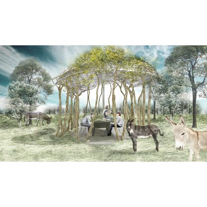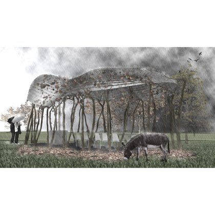 The project investigates a workflow that combines plant growth, plant manipulation, 3d-scanning, parametric design and structural interventions on the example of a Baubotanik pavilion. The living tree structure consists of 36 London Plane Trees (Platanus hispanica) that were originally planted in 2012 at the art space Neue Kunst am Ried. It serves as a multifunctional outdoor space for gathering, exhibiting, cooking and eating. The design for the pavilion roof was developed by an interdisciplinary team of TUM students based on the actual shape of the trees that resulted from the interplay between plant growth and human intervention over a period of 8 years. The implementation is a step-by-step process that reacts on the future development of the tree structure: With the increasing stability due to plant growth, the roof will be gradually closed. During this process, the structure is regularly documented using photogrammetry and/or laser scanning, and structural tests are carried out. The project aims to transfer the insights from the ARI project “Structural Investigations into Meghalaya’s Living Root Bridges” into a digital-physical design-build workflow.