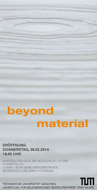 Beyond Material folgt dem Wunsch wieder händisch mit Material in Kontakt zu kommen. In Ausseinandersetzung und Reibung mit selbstgewählten Materialien wurden künstlerische Arbeiten entwickelt, deren Wirkung über die bloße Materialität hinaus geht. Wann transzendieren Materialien? Wie entsteht eine Aura? Im Wechselspiel zwischen Konzept und Materialerfahrung entstanden Skulpturen, Installationen, Bilder, Aktionen und Videos.
