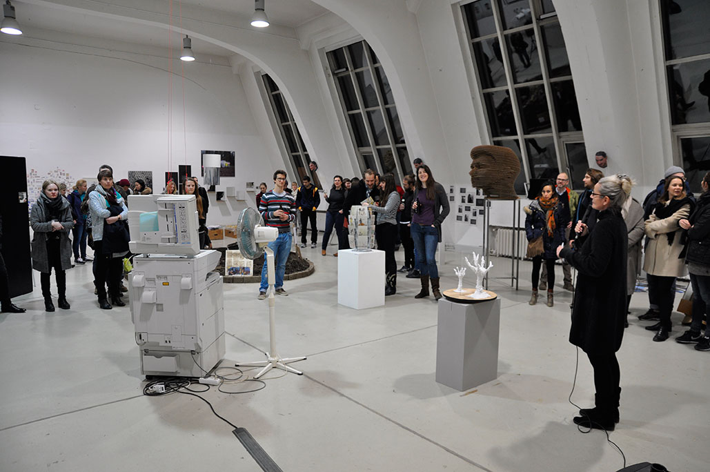 Die Abschlussausstellung des Wintersemesters 2014/2015 zeigt künstlerische Arbeiten von Bachelor und Master Studierenden, die sich ein Semester lang mit dem Thema Spiegelung praktisch und inhaltlich auseinander gesetzt haben. Fragestellungen, Wahrnehmungen oder Untersuchungen wurden in eine lesbare, künstlerische Form gebracht. Die manigfaltigen Ergebnisse sind nun in Form von Skulpturen, Videos, Audioarbeiten und Wandarbeiten im Königsaal an der Technischen Universität München erlebbar. Die Ausstellung selbst kann als Spiegel der Jetzt-Zeit junger Leute betrachtet werden.