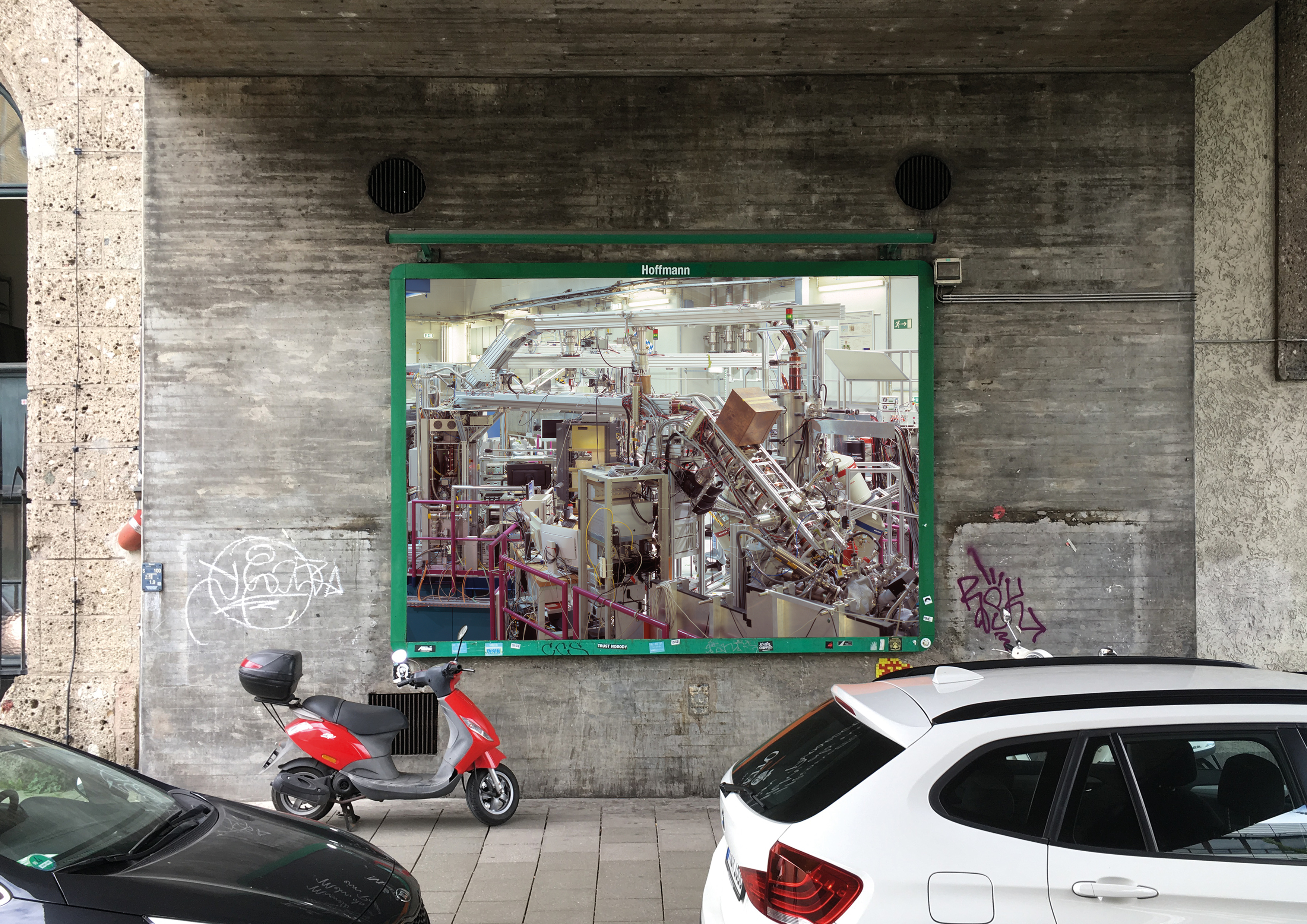 An einigen Tagen wird uns auf der Hofmannplakatwand (auf der Theresienstraße unter der Brücke zum Nordgelände), ein großformatiges Foto einen Einblick in technologische Maschinerien aus dem Forschungszentrum für Neutronenquellen in Garching geben. Das dokumentarische Foto zeigt in nüchterner Betrachtung hoch komplexe Versuchsaufbauten und Forschungseinrichtungen, die der Öffentlichkeit für gewöhnlich verborgen bleiben. Es fasziniert durch den Gegensatz von Funktionalität und absurd anmutendem Chaos.