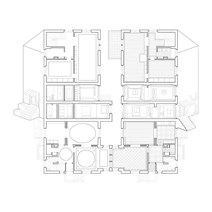 Der Reichtum der Architektur sollte genutzt werden und die Arbeit mit Referenzen bildete den Ausgangspunkt vom eigenen Entwurf. Durch die Analyse von Innenräumen und Fassaden aus verschiedenen Epochen wurden architektonische Prinzipien und Themen abgeleitet, welche die Diskussion im Studio und die Arbeit am Projekt begleiteten. Der Referenzkatalog war eine Auswahl von Innenräumen und Fassaden aus den letzten 500 Jahren, welche wir als wichtig betrachteten, die uns inspirieren und die bis heute eine architektonische Kraft und Gültigkeit behalten haben.