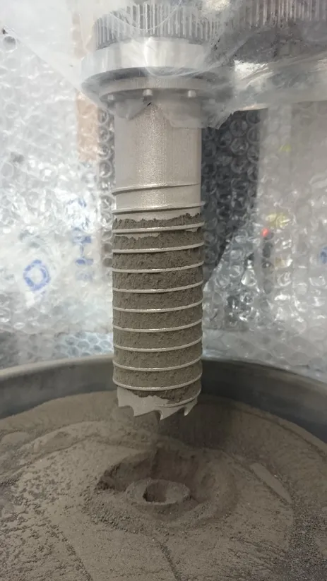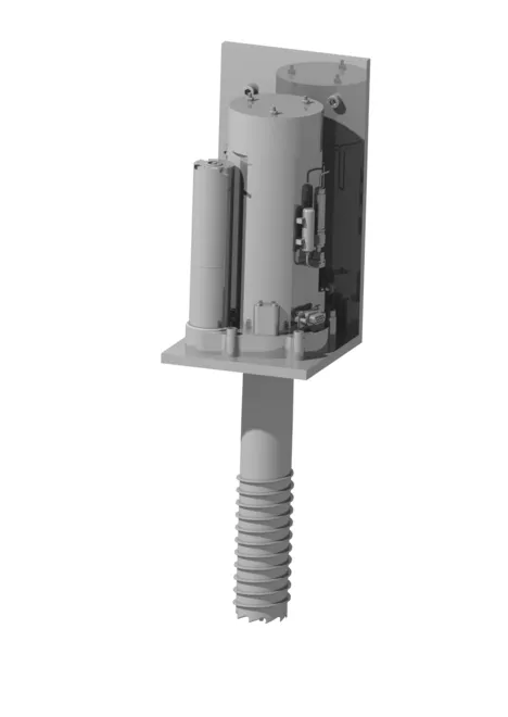 Bevor der Regolith erwärmt werden kann, muss der VS in den Boden eingebracht werden. Der VS kann jedoch nicht einfach in den Boden gedrückt werden. Bei der Schwerkraft des Mondes steht dem relativ kleinen LUVMI-Rover nicht genügend vertikale Kraft zur Verfügung. Mit anderen Worten, wenn der LUVMI-Rover versuchen würde, den VS in den Boden zu drücken, würde er sich einfach von der Oberfläche abheben. Aus diesem Grund ist der VS mit einer bohrerartigen Schale ausgestattet. Die rotierende Schale, die mit einer Schnecke und einer Schneide ausgestattet ist, kann sanft in den Boden eingeschraubt werden. Auf diese Weise wird die notwendige Vertikalkraft reduziert, während der Boden innerhalb der Bohrschale relativ ungestört bleibt.