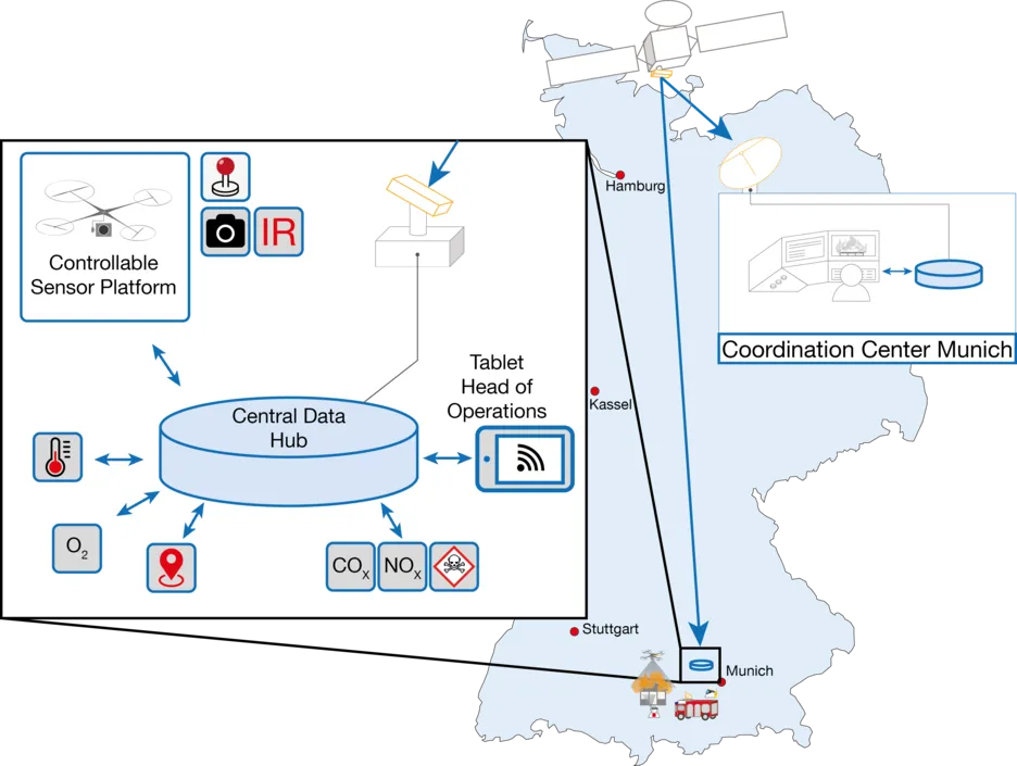 Des Weiteren kann mithilfe dieses Konzepts der Disponent direkt in den Einsatz eingebunden werden. Dieser ist nicht nur in der Lage die Situation aufgrund der vorliegenden Daten besser zu evaluieren, sondern kann auch direkt mit einem steuerbaren UAV die Personensuche unterstützen oder auch wichtige Gasmessungen aus dem Flug heraus durchführen.
