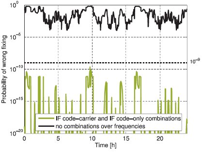 Carrier phase measurements are extremely accurate but ambiguous. The latter ambiguity arises from the periodicity of the carrier phase signal. This integer number of cycles between the satellite and receiver has to be estimated with measurements from multiple epochs and/ or code measurements. The reliability of ambiguity resolution was improved by the institute by more than 9 orders of magnitude with the help of new multi-frequency code carrier linear combinations.