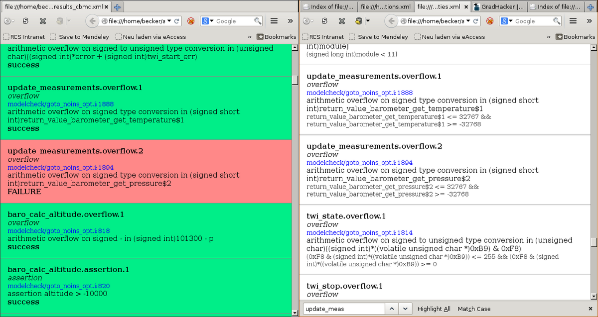 - Approaches for Software Verification of an Emergency Recovery System for Micro Air Vehicles, M. Becker, M. Neumair, A. Söhn, S. Chakraborty, In 34th International Conference on Computer Safety, Reliability and Security (SAFECOMP) Companion, Delft, NL. [Preprint PDF]