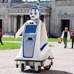 The Interactive Urban Robot (IURO) is capable of navigating to a designated place in town without prior map knowledge or GPS information. It retrieves direction information by asking passers-by. The goal of the project is to develop and implement methods and technologies enabling robots to navigate and interact in densely populated, unknown human-centred environments and retrieve information from human partners in order to achieve a given task goal.